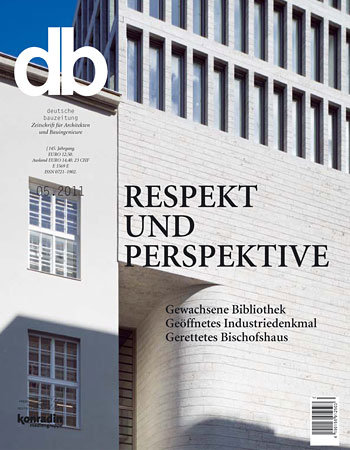 Ziel des 2005 von der Landesregierung ausgelobten Architektenwettbewerbs war nicht nur die Modernisierung und Erweiterung des im Laufe der Zeit vielleicht etwas verbastelten, sonst aber sanierungswürdigen Altbaus, sondern auch der »Aufbau von Informationskompetenz«, das Angebot neuer bibliothekarischer Dienstleistungen (Studienmöglichkeiten, Veranstaltungen, Ausstellungen), die »zeit- und technikgemäße sowie benutzerorientierte Präsentation der Bestände« und der Wunsch nach einer »radikalen Verbesserung der Raumsituation«. Vor allem in dieser Hinsicht entsprach der Beitrag der Stuttgarter Wettbewerbsgewinner Bez + Kock voll und ganz dem Anforderungsprofil. Anders als viele Mitbewerber rückten sie dies allerdings nicht plakativ in den Vordergrund, sondern verschmolzen Alt- und Neubau zu einer gleichberechtigten Einheit, die durch ihre kompakte Form durchaus energetische Vorteile bietet. Während der größtenteils mit vorgefertigten Wand- und Deckenelementen aus Beton errichtete Neubau Niedrigenergiestandard entspricht, blieb die energe-tische Sanierung des Altbaus aus Denkmalschutzgründen allerdings auf die Erneuerung von Fensterdichtungen und der Haustechnik beschränkt.