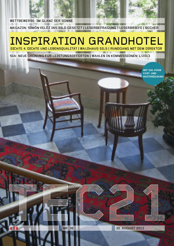 Wir haben dafür das Hotel Waldhaus in Sils-Maria ausgewählt, weil hier das Grandhotel quasi noch in Reinform vorliegt: Der imposante «Hotelkasten» über dem Silsersee ist seit seinem Bau 1908 zwar immer wieder neuen Bedürfnissen angepasst, in seinem Wesen jedoch nie verändert worden. Als Familienbetrieb wird das Fünfsternehaus noch ganz im guten alten Stil geführt: mit grossen Gesellschaftsräumen, Bibliothek, Hausorchester, Konzerten und Dichterlesungen und mit treuen Stammgästen aus dem europäischen Bildungsbürgertum. Wer meint, eine hohe Bewohnerdichte und hohe Lebensqualität würden nicht zusammengehen, den wird ein Aufenthalt hier eines Besseren belehren: Der Erholungswert ist ungemein gross. Warum das so ist, erfahren Sie in unserem Themenschwerpunkt. Nach einigen Bemerkungen zu den Problemen im heutigen Siedlungsbau folgen eine Beschreibung des Hotel Waldhaus und das Protokoll eines Rundgangs mit Hotelier Urs Kienberger.