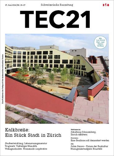 Die Genossenschaft arbeitet ebenso visionär wie professionell. Für die Mitwirkung schuf sie in allen Phasen geeignete, effiziente Strukturen. Beeindruckend ist, dass sie das Projekt zusammen mit dem Architekturbüro Müller Sigrist ohne Generalunternehmen durchzog und selber eine zweiköpfige professionelle Projektleitung stellte. Dadurch wahrte sie sich viel Flexibilität während der Ausführung und konnte noch spät neue Materialien wählen, wie das massive Eichenholz in den Küchen, oder auf Wünsche der Mieter eingehen und Wohnungen zusammenlegen. Der Endausbau ist dem Zeitplan zurzeit einen Monat voraus, die Kosten werden vermutlich rund 1 Mio. Franken unter dem Budget bleiben. Die Wohnungen, Läden und Büros werden seit April etappenweise bezogen; am 22. und 23. August steigt das Eröffnungsfest.TEC21, Fr., 2014.06.27