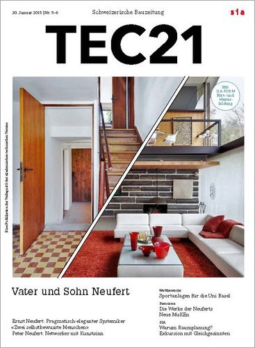[Interview von Lilian Pfaff, Korrespondentin TEC21, und Johannes Kister, Professor an der Hochschule Dessau am Bauhaus, der die Bauentwurfslehre für die Neufert-Stiftung aktualisiert, mit Peter Neuferts Frau Marys Neufert, und Tochter Nicole Delmes am 2. August 2013 im Haus X1 in Köln.]TEC21, Fr., 2015.01.30