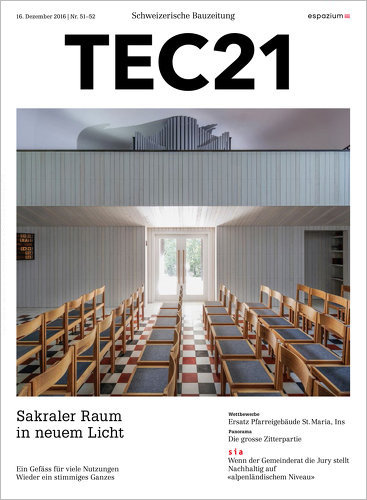 Der Umbau der Christuskirche ist ein gleichermassen inspirierendes und zukunftsweisendes Projekt für Gemeinden, die vor ähnlichen Herausforderungen stehen. Natürlich lassen sich derartige Konzepte nicht pauschal übertragen, jede Situation ist spezifisch und erfordert ein individuelles Vorgehen. Hier sind passgenaue Lösungen und Kreativität gefragt. Das Projekt der Christuskirche macht jedoch deutlich, dass eine Gemeinde auch mit überschaubaren Ressourcen eine neue Perspektive für ihr kirchliches und gemeinschaftliches Leben gewinnen kann – nicht zuletzt dank dem grossen Engagement aller Beteiligten. Ein Beispiel, das Schule machen sollte.TEC21, Fr., 2016.12.16