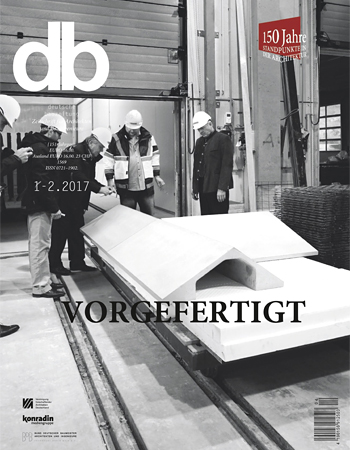 Wenn aber auf der Baustelle kaum noch korrigierend in Konstruktion und Gestaltung eingegriffen werden kann, muss der zuvor erreichte Planungsstand deutlich weiter fortgeschritten sein als bei einer konventionellen Bauweise. Auf welche Weise das gelingen kann, beleuchten ausführlich die ausgewählten Projekte in db 1-2/2017. | Martin Höchst
