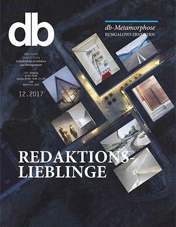 Nun ist es wieder so weit! Das Jahr neigt sich dem Ende zu und wir laden Sie zu einer Entdeckungsreise zu den Lieblingsgebäuden der db-Redakteure ein. Alle Projekte stellen wir Ihnen dabei unter dem gewohnt architekturkritischen Blickwinkel der db vor. Folgen Sie uns auf den nächsten Seiten zum nahezu unsichtbaren Weltkriegsmuseum von BIG in die dänische Provinz, zu einer rundum gelungenen Stadtreparatur nahe der niederländischen Grenze und einem luftigen Pavillon mit tragenden Glaswänden hinter derselben, weiter zu einem vermeintlich fertiggestellten Umspannwerk in München, einem prägnanten Depot der städtischen Straßenreinigung Augsburg sowie zum tief eingegrabenen Depotgebäude der Tiroler Landesmuseen. | Die Redaktion