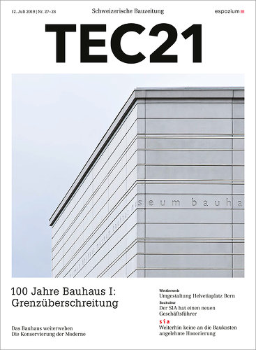 Aber auch die drei ehemaligen Standorte selbst bieten Gelegenheit zum Beleben der Geschichte: Sie haben sich zum Jubiläum mit je einem neuen Museum beschenkt (ab S. 27). In Weimar hat Heike Hanada eine Landmarke geschaffen, die mit dem wiedereröffneten Neuen Museum seit April 2019 die «Topografie der Moderne» repräsentieren soll – zwischen ehemaligem Gauforum und Park eine Herausforderung. In Dessau haben addenda architects das Vermächtnis des Bauhauses als schwarzen Kubus in einen lang gestreckten Glaskörper gehängt. Der Freiraum im Erdgeschoss soll ab September 2019 als offene Bühne für die Stadt fungieren. Beide Entwürfe versuchen, nicht in einen formalen «Bauhaus-Stil» und damit in eine Imitation abzugleiten, sondern der visionären Idee durch eine Neuinterpretation Ausdruck zu verleihen. Auch wenn dies formal nicht immer geglückt ist, sind wir gespannt, wie die Museen angenommen werden. Beim dritten Standort, der Sanierung und Erweiterung des Bauhaus-Archivs / Museum für Gestaltung in Berlin durch Staab Architekten, lässt die Eröffnung noch bis 2022 auf sich warten. Immerhin hat der Spatenstich im Juni 2019 den Baubeginn eingeläutet.