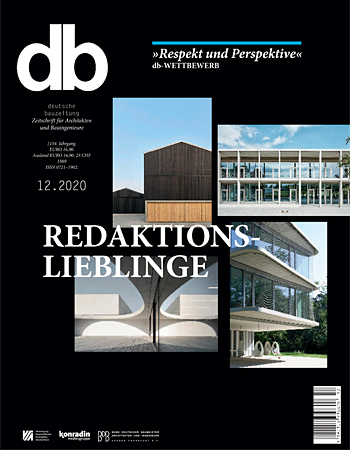 Die Tour zu den Jahreslieblingen der db-Redaktion gehört im Dezember-Heft längst zur lieb gewonnen Tradition für die Leser und die Redakteure. Und so machten wir uns auch 2020 wieder auf. Corona- und reisebeschränkungsbedingt erkundeten wir diesmal unser direktes Umfeld – also Stuttgart und Umgebung. Folgen Sie uns auf den nächsten Seiten zu einer Ballettschule in Stuttgart, einer Grundschulerweiterung in Ludwigsburg, einem Wohnhaus in Schwaikheim und der Bundeswehrfachschule in Karlsruhe. Alle Projekte stellen wir Ihnen unter dem spezifischen und gewohnt architekturkritischen Blickwinkel der db vor. | Die Redaktion