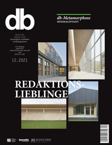 Die Tour zu den Lieblingen der db-Redaktion gehört im Dezember-Heft längst zur lieb gewonnenen Tradition für die Leser und die Redakteure. Und so machten wir uns auch 2021 wieder auf. Corona bedingt schweiften wir allerdings dieses Jahr nicht in die Ferne, sondern reisten nach Köln, Schwäbisch Hall, Lochau am Bodensee und Pforzheim. Folgen Sie uns auf den nächsten Seiten zum Historischen Archiv Köln, zu einem Kindergarten und einem Jugendzentrum und kommen Sie mit zum Abbaden ins Freibad. Alle Projekte stellen wir Ihnen unter dem gewohnt architekturkritischen Blickwinkel der db vor. | Die Redaktion