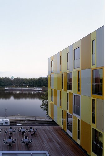 Wohnen auf Zeit ist dem Wohnen in fremden Möbeln gleichzusetzen. In Heimen oder Herbergen gibt es keine (und wenn schon, dann nur verschwindend kleine) Flächen, die die Unterbringung eigener Gegenstände ermöglichen. Man lebt nicht in einem Ambiente, das man selbst ausgewählt hat und das deshalb durch die eigene Geschichte mit einem selbst verbunden ist. Insofern ist auch die Wahl der Möbel und der weiteren Ausstattung keine, die dem persönlichen Geschmack von Bauherr oder Pächter entspricht, sondern die der architektonischen Botschaft des Hauses entsprechen sollte. Neben den einzelnen Zimmern betrifft das vor allem die Ausstattung von Speise- und Aufenthaltsräumen. Wenn dort Leuchten und Stühle, Tische und Theken einen roten Faden vom Detail zum Ganzen erkennen lassen, wird die Akzeptanz sehr viel höher sein als bei Angeboten, die in allen Bereichen die geschmackliche Uneinigkeit von Bauherr, Pächter und Architekt aufzeigen. Erst dann, wenn hinsichtlich der Durchgängigkeit alles im Lot ist, kann der Bewohner getrost eine Postkarte seiner Herberge in die Hand nehmen und wie früher mit einem Kreuz sein Fenster markieren – und auf die Rückseite mit Stolz schreiben: »Hier wohne ich«.Architektur + Wettbewerbe, Fr., 2006.07.07