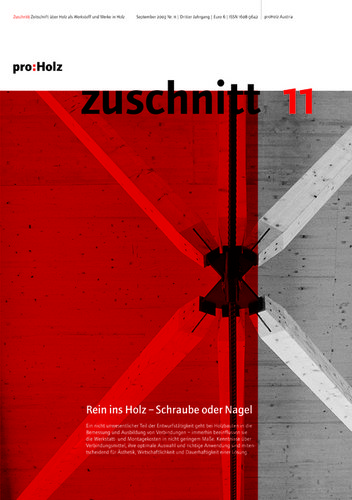 Das Thema sollte komplex und tiefgehend abgehandelt werden, Entwicklung und Geschichte der Holzverbindungen seit der Steinzeit sollten ebenso Platz finden wie die hohe Kunst japanischer Holzverbindungen oder die Art und Weise, Verbindungen ebenso primitiv wie wirksam mit Seilen herzustellen. Generationen von Pfadfindern bekommen diese Verbindungstechnik als Basiswissen heute noch vermittelt. Es wurde angeregt, klassisch-mechanische Verbindungen und Sonderlösungen zu trennen, nach »punktförmigen, linearen und flächigen Verbindungen« zu ordnen, nach dem Materialverbund »Holz-Holz, Holz-Beton, Holz-Glas« zu unterscheiden. Die Renaissance der zimmermannsmäßigen Verbindungen, also jener Holz-Holzverbindungen, die im allgemeinen kraftschlüssig wirken, mittels CNC-Technik (Computer numerical control, siehe Zuschnitt 9, Seite 26) dürfe nicht fehlen, hieß es. Das Thema Verbindungen sollte auf dem Stand der Technik, anwenderbezogen und problemorientiert abgehandelt werden. Angesichts der fast erschlagenden Fülle an Vorschlägen zum Inhalt zeigte sich zweierlei: einmal, dass eine Ordnungsstruktur, eine Kategorisierung vonnöten sei und zugleich, dass es unmöglich sein würde, das Thema in seiner ganzen Bandbreite und Komplexität in eine Zuschnitt-Nummer zu packen. Die Verbindungstechnik musste eingegrenzt werden auf einen Umfang, der im traditionell schlanken Zuschnitt Platz finden kann, ohne oberflächlich behandelt zu sein. Der »Morphologische Kasten, frei nach Zwicky« tauchte auf. Er fand als Ordnungsstruktur Erwähnung, aus der man schwerpunktartig jene Verbindungen oder Verbindungsmittel herausnehmen sollte, die Entwicklungspotenzial haben. Keiner fragte genauer nach, wer Zwicky und dieser ominöse Kasten sei. Eine Bildungslücke? Wer ihn nicht kannte, hatte wohl eine vage Vorstellung. Als zu umfassend verworfen, ging Zwickys Kasten in der Diskussion wieder unter. In die kam nun - kraftvoll stählern - der Nagel und mit ihm der Vorschlag, sich im Zuschnitt doch ausschließlich ihm und seiner Vielfältigkeit, seiner Potenz und zugleich Einfachheit zu widmen. Ein ganzes Heft nur für den Nagel? Manchen schien das doch zu puristisch und man einigte sich darauf, auf den universellen Überblick zwar zu verzichten, sich statt dessen aber den stift - oder stabförmigen Verbindungsmitteln, bei denen die Nägel eine Art Prototyp bilden und ihrer Entwicklung zu widmen - ausführlich und facettenreich. Sie finden im Zuschnitt nun den Versuch einer geordneten Übersicht über das komplexe Thema «Stabförmige Verbindungsmittel«, ihre Charakteristik und ihre Anwendungsmöglichkeit, dann einen Fachartikel über das Potenzial von Schrauben, deren Entwicklung sich bekanntlich von der der Nägel ableitet, einen Beitrag über die neueste Entwicklung bei Stabdübeln, die ihren vorläufigen Höhepunkt im auch für Laien bestechend leistungsfähigen selbstbohrenden Stabdübel findet, in der Folge ein Anwenderbeispiel zu vorgenanntem und schließlich eine sehr persönlich gehaltene, fast philosophische Betrachtung konstruktiver Verbindungsmittel mit den Augen des Praktikers Wolfgang Pöschl. Überlegungen zum Brandschutz von Knoten und Verbindungen runden das Thema ab, während Geschichte und Wesen des »Matador«, jenem seit 100 Jahren unverwüstlichen Holzbaukasten aus Klötzen und stabförmigen Verbindungsmitteln, in den Holzrealien die feine Würze des Themas bilden.