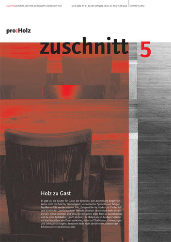 In ländlichen Regionen wurde der Gast immer mit Holz »bedient«. Traditionelle Bauweisen und Interieurs - naturgemäß mit Holz und Stein - eigneten sich bestens als Projektion einer heilen Welt, die der moderne, urban geprägte Großstadtmensch während weniger Wochen im Jahr zu finden hoffte. Bauen mit Holz wurde Teil einer touristischen Vermarktungsstrategie, die mit Bildern des Ruralen Sehnsüchte nach Heimeligkeit befriedigen will. Zeitgleich mit dem Verlust regionaler Identitäten - durch strukturelle Veränderungen und vermutlich auch im Zusammenhang damit - ist eine Urbanisierung touristischer Begehrlichkeiten zu bemerken. Diese beschränkt sich allerdings auf coole Events, am Lederhosenimage des alpinen Baustils kratzt sie kaum.