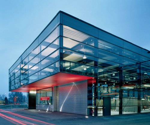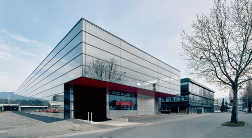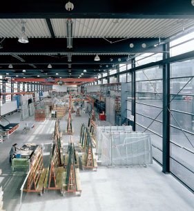 Die Liegenschaft des kontinuierlich wachsenden Glasereibetriebs wurde innerhalb der letzten dreißig Jahre bereits elfmal erweitert und umgebaut. Mit ihrem gestalterischem Anspruch behaupten sich die Bauten gegenüber den zum Teil sehr viel größeren Nachbarn und tragen zugleich die Kompetenz des Unternehmens in den öffentlichen Raum.