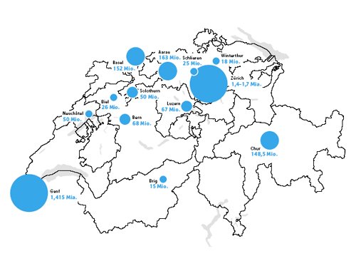 Doch den SBB gehören nicht nur Bahnhöfe und Brücken, die sie gut gestalten und pflegen, sondern auch Land: 105 Millionen Quadratmeter, das sind dreimal der Kanton Basel-Stadt oder ein Vierhundertstel Schweiz. Beeindruckend ist weniger das Ausmass als die Qualität dieses Besitzes: Ein stattlicher Anteil davon ist Land an erstklassiger Lage in den Stadtzentren - mit entsprechendem Wert. Vor hundert Jahren lag der Bahnhof abseits des Stadtzentrums, heute ist er nicht selten das Zentrum schlechthin. Hinter den Bahnhöfen und seitlich der Gleise gehört den SBB Land, auf dem sie früher Güter umschlugen oder das sie für neue Gleise und Gebäude horteten. Heute weiss man: Für eigene Zwecke werden die SBB diese Flächen nie mehr brauchen. Von Genf über Biel nach Aarau bis Chur ist zentraler Boden frei geworden.