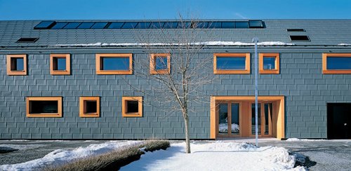 Die Gestaltung des Arbeitsbereichs wird ganz von der Produktion beherrscht. Die Neubauhallen sind als Stahl- und Betonkonstruktionen mit großen Stützweiten ausgeführt, die eine hohe Flexibilität der Nutzung erlauben. Die Fassaden aus silbrigen Aluminiumblechen, Sichtbeton und Glasflächen unterstreichen den technischen Charakter der Gebäude. Im Innern sind helle und übersichtliche Arbeitsplätze untergebracht, die zur rationellen Produktion beitragen. Eine besondere Herausforderung war die Sanierung der denkmalgeschützten Fabrikantenvilla. Im Einklang mit der Denkmalpflege wurden die erhaltenen Art-Deco-Decken, farbigen Fenster und Holztäfelungen restauriert.