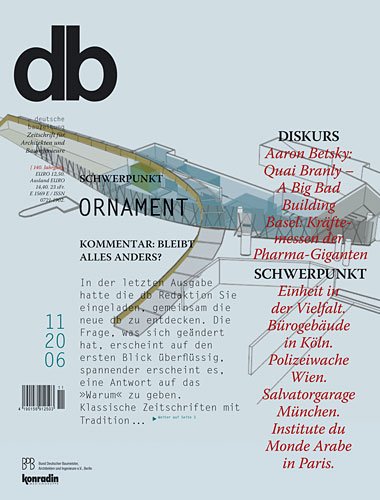 So ist das Ornament aus seiner Verbannung zurückgekommen. Es entspricht dem Bedürfnis nach lokaler Identität und befriedigt die Ansprüche an eine komplexer gestaltete Umwelt. Dabei beinhaltet das kommunikative Potenzial der Ornamente auch eine emotionale Komponente, die der rein funktionalistischen Architektur abhanden gekommen war. Mit welcher theoretischen Legitimation oder technischen Finesse auch immer, gerade die erwähnten Beispiele zeigen, dass meistens aus dem Kontext oder der Bauaufgabe heraus auf das Ornament zurückgegriffen wird. Es ist zwar aus der zeitgenössischen Architektur nicht mehr wegzudenken, aber es wird behutsam eingesetzt. Ein neues Rokoko ist somit nicht zu befürchten.db, Fr., 2006.11.03