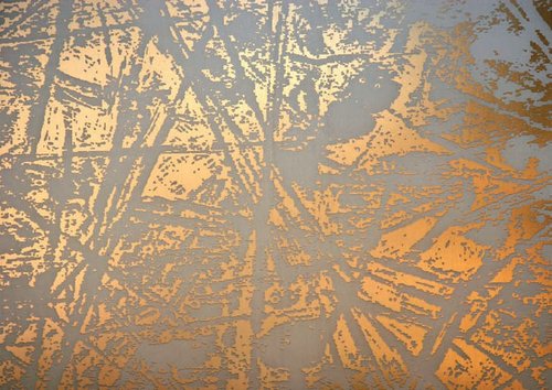 Ein vorgefertigtes, auf Pixeln basierendes Endlosmuster hebt sich mit glänzender Oberfläche vom matten, messingfarbenen Grund ab, so dass sich je nach Lichteinfall eine fast einheitliche Oberfläche ergibt oder das Muster in deutlichem Kontrast hervortritt. Erreicht wird diese Struktur durch eine leicht erhabene und eine weniger starke Materialschicht, die jeweils in unterschiedlichen Farbtönen bzw. Oberflächen (matt/glanz-) eloxiert ist. Dass dieses patentierte Verfahren derzeit nur von einer spezialisierten Firma in Neuseeland angewandt werden kann, hat die Bauherren trotz höherer Kosten und der Risiken der Lieferfristen nicht abgeschreckt. Die visuelle Wirkung der eigens angefertigten Musterfassade ließ die Bedenken in den Hintergrund treten.