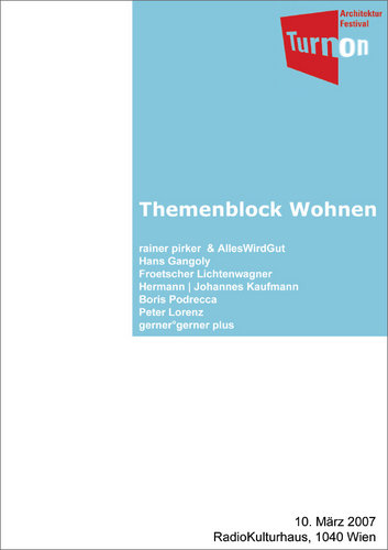 Bereits seit 2003 präsentieren zahlreiche Protagonisten der Architekturszene im Rahmen von „Turn On“ alljährlich speziell ausgewählte Bauten – aktuelle Highlights der Architektur.