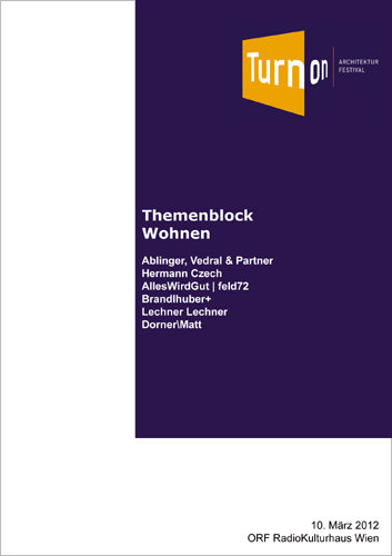 Die Plattform am Samstag präsentiert auch zum 10-jährigen Jubiläum ein weit gespanntes Vortragsprogramm führender ProtagonistInnen der österreichischen Architekturszene mit aktuellen Highlights, die im In-, aber auch im Ausland entstanden. Renommierte Architekten aus Paris und Berlin stellen den internationalen Rahmen her. Dominique Perrault ist anlässlich des Baus der Vienna DC Towers bei TURN ON zu Gast, und Arno Brandlhuber aus Berlin setzt einen Kontrapunkt zur österreichischen Entwicklung des Wohnbaus.